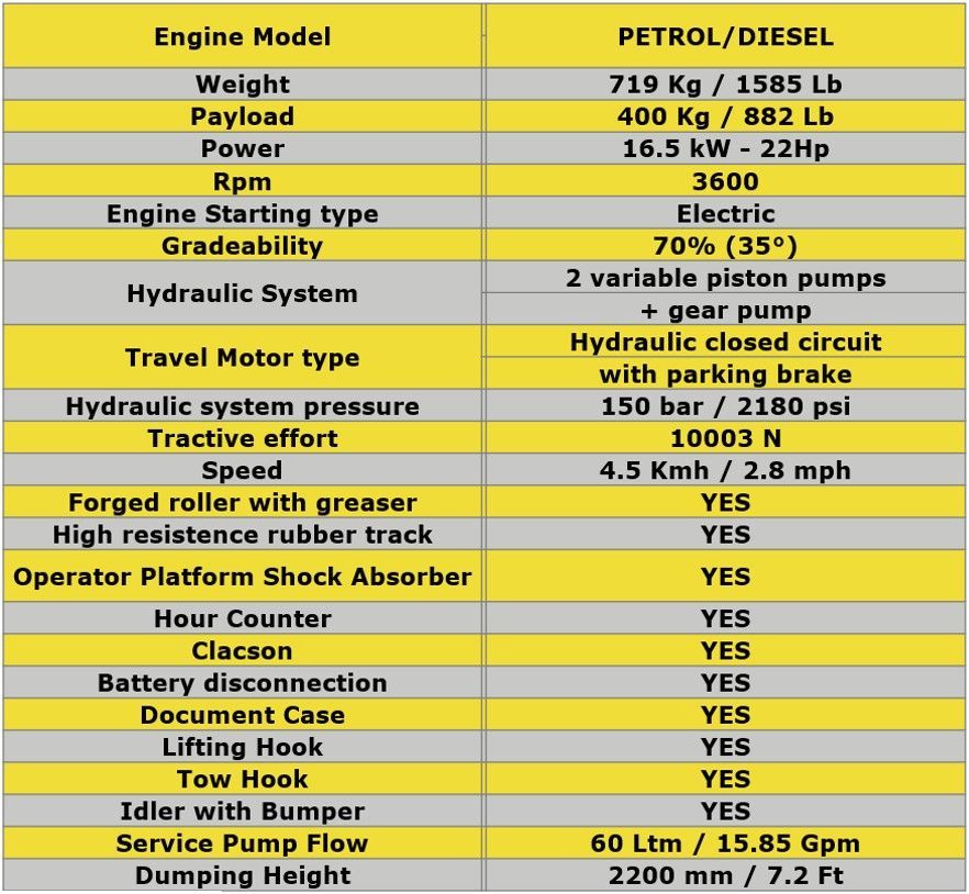 Motori potenti (benzina o elettrico) con regolazione della velocità, dotato di trazione idrostatica la quale consente un uso semplice e confortevole